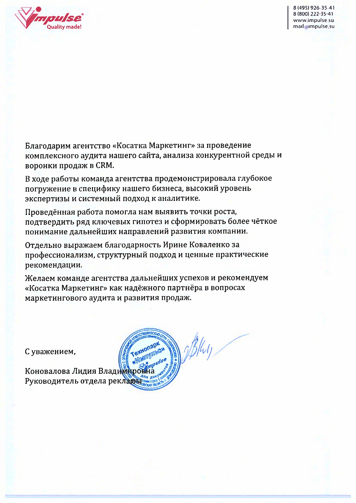 Нам удалось вывести процесс лидогенерации на новый уровень, гарантируя клиенту не только целевые заявки, но и успешно заключенные договоры за счет активного взаимодействия сотрудников нашей компании с отделом продаж клиентов.